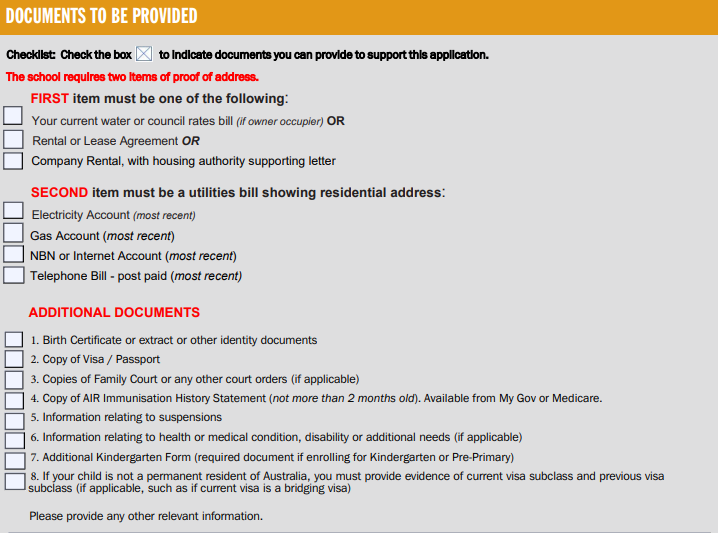 When lodging an application for enrolment, the following documentation must be provided via email, or photocopies can be provided at the front office. Originals can be presented to the front office for the school to photocopy if required.