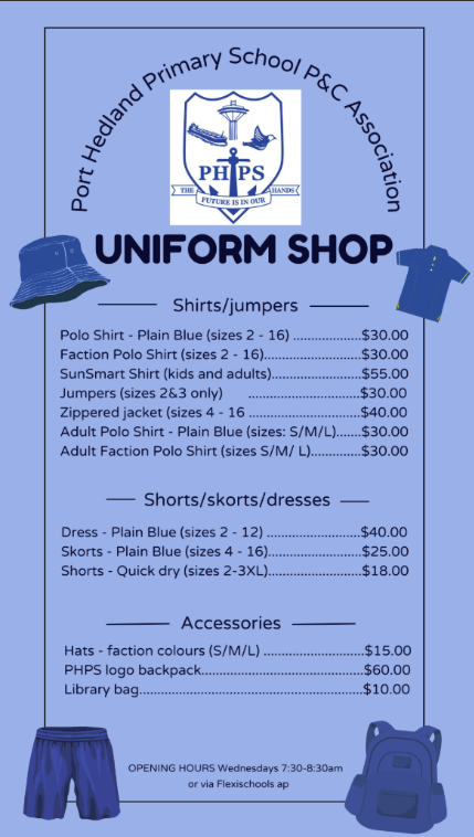 Port Hedland Primary School’s dress code plays and important role in the promotion of a positive image both within the school and in the wider community. Our dress code can be found in 2026 Parent Booklet in the Information section of this website.